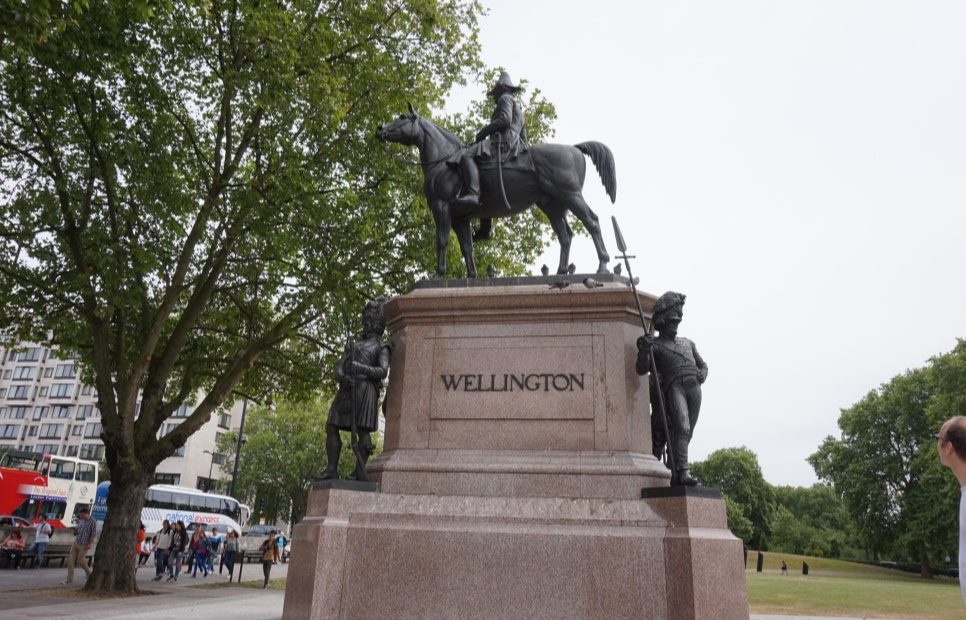 근위병들이 버킹엄 궁전에서 교대식을 마치면서 이 웰링턴 아치를 한 바퀴 돈다고 한다.