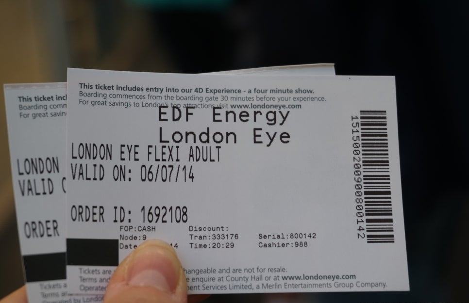 미리 인터넷으로 예매해뒀던 런던 아이 티켓.