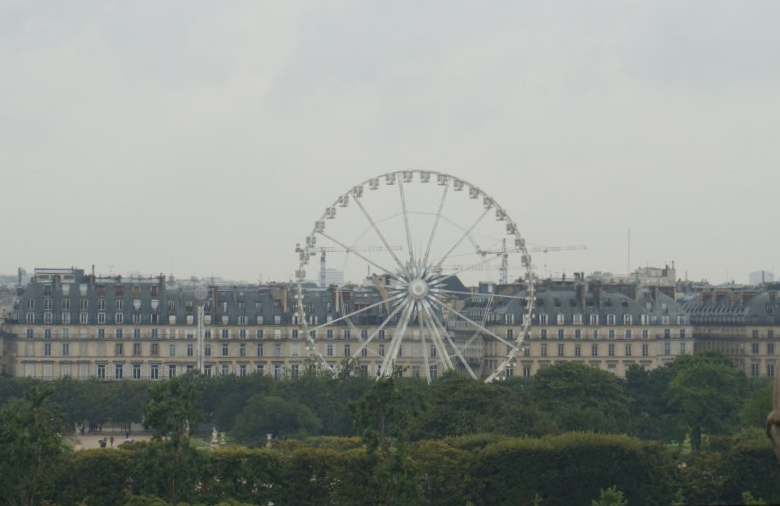 저 멀리 보이는 콩코르드 광장의 파리 대관람차(Roue de Paris - Big Wheel on Place de la Concorde).